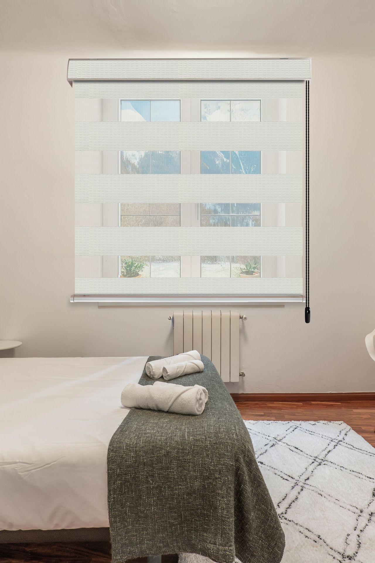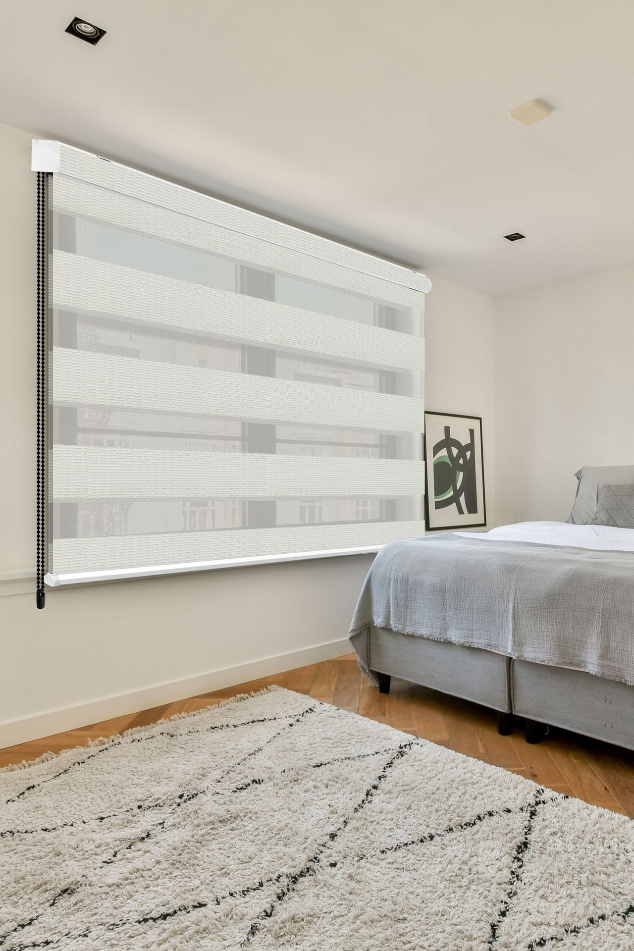 La persiana Furze permite que la luz entre suavemente, creando un ambiente luminoso, acogedor y moderno. Su semitraslúcido filtra la claridad del sol sin perder privacidad, ideal para ventanales grandes o medianos. Su diseño minimalista y elegante aporta frescura y estilo a cualquier espacio. La tela de poliéster ligera y resistente tiene caída suave y textura delicada que mantiene la persiana con movimiento natural y look impecable.