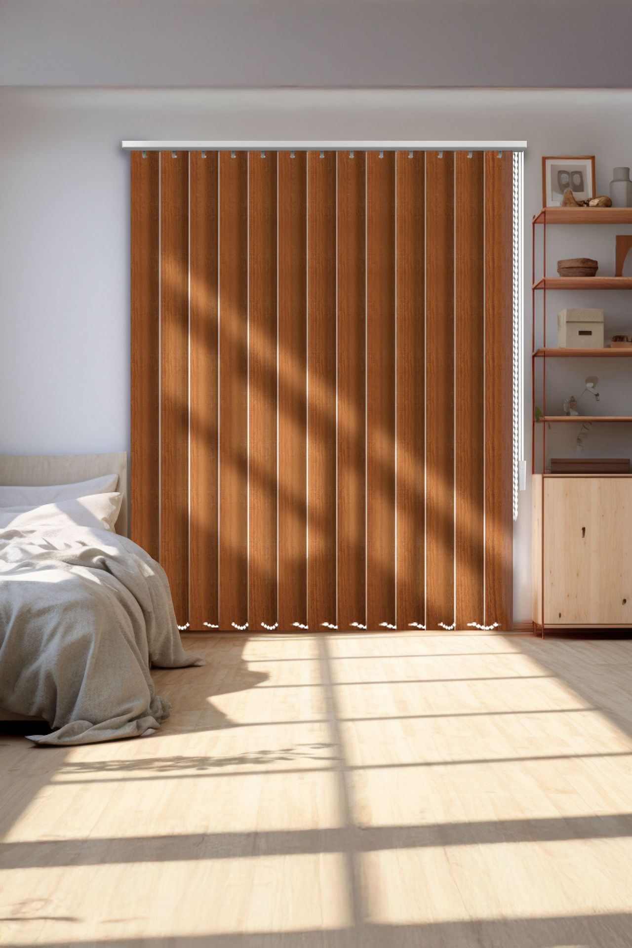 Esta persiana vertical con acabado tipo madera aporta la elegancia de las vetas naturales sin los cuidados exigentes de la madera real. Diseñada para brindar practicidad, durabilidad y una presencia visual acogedora, es perfecta para transformar espacios residenciales o corporativos en ambientes sofisticados y orgánicos